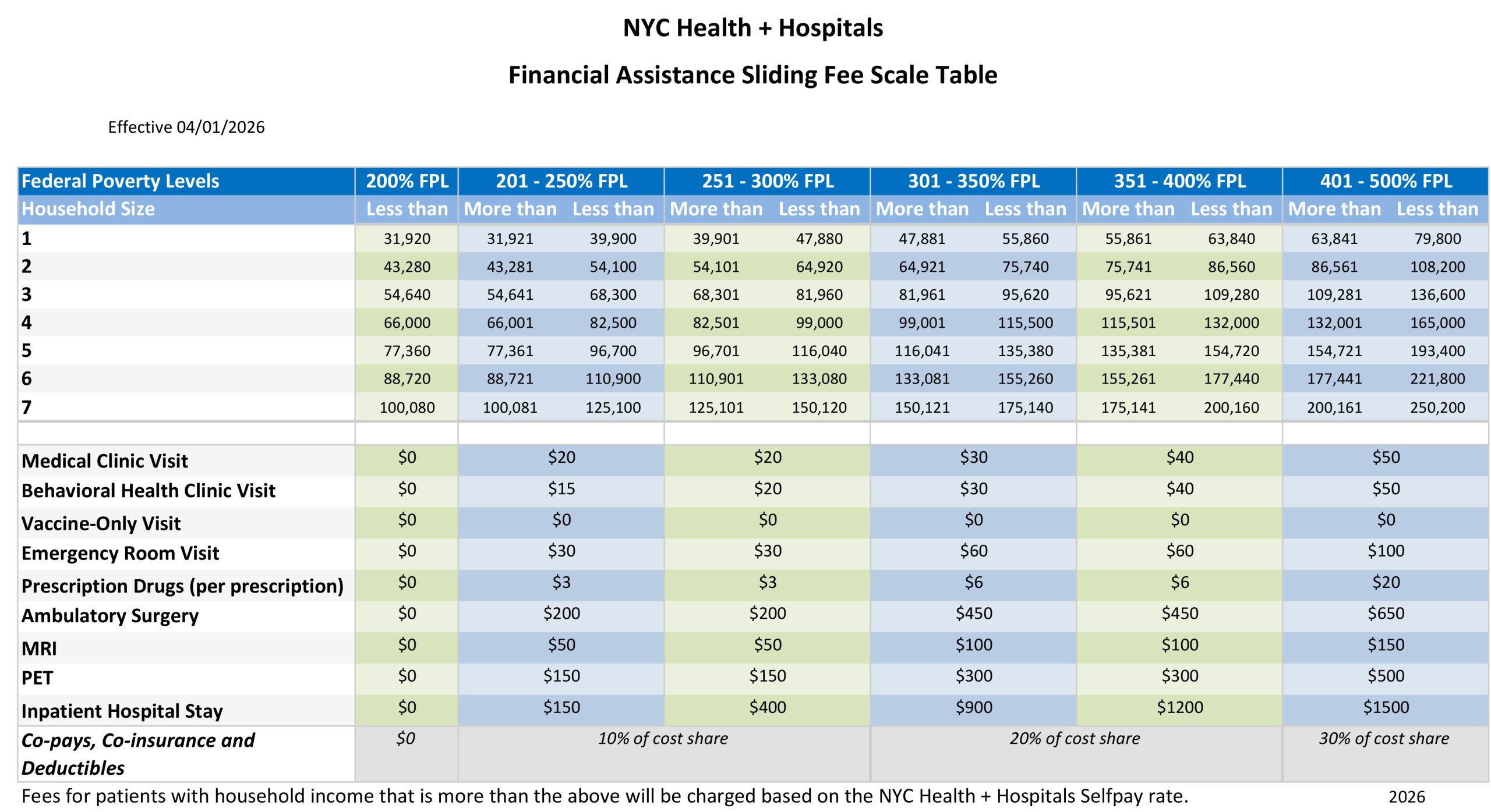 NYC Care will have a financial counselor at NYC Health + Hospitals screen you every 12 months.